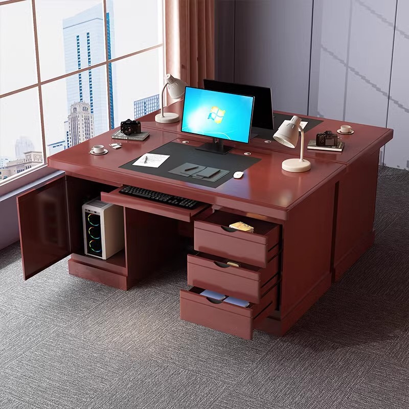 Upgrade your workspace with this premium executive desk, crafted from rich, polished wood in a warm reddish-brown finish. Designed for professionals who value both style and substance. Whether you’re furnishing a CEO’s office or creating a welcoming client-facing space, this desk delivers sophistication and practicality in equal measure.
