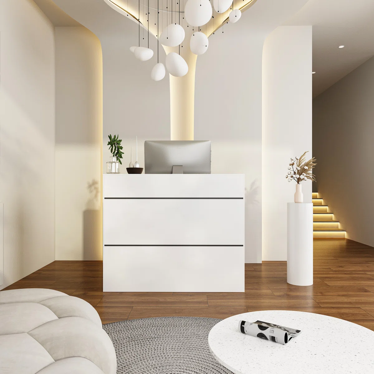 The entrance to your business sets the tone for every client interaction. Elevate your lobby with this 47-inch Modern Reception Desk, a masterclass in minimalist design that combines a clean, professional aesthetic with high-performance functionality. This reception counter is designed to project a message of organization, cleanliness, and modern sophistication to everyone who walks through your door.