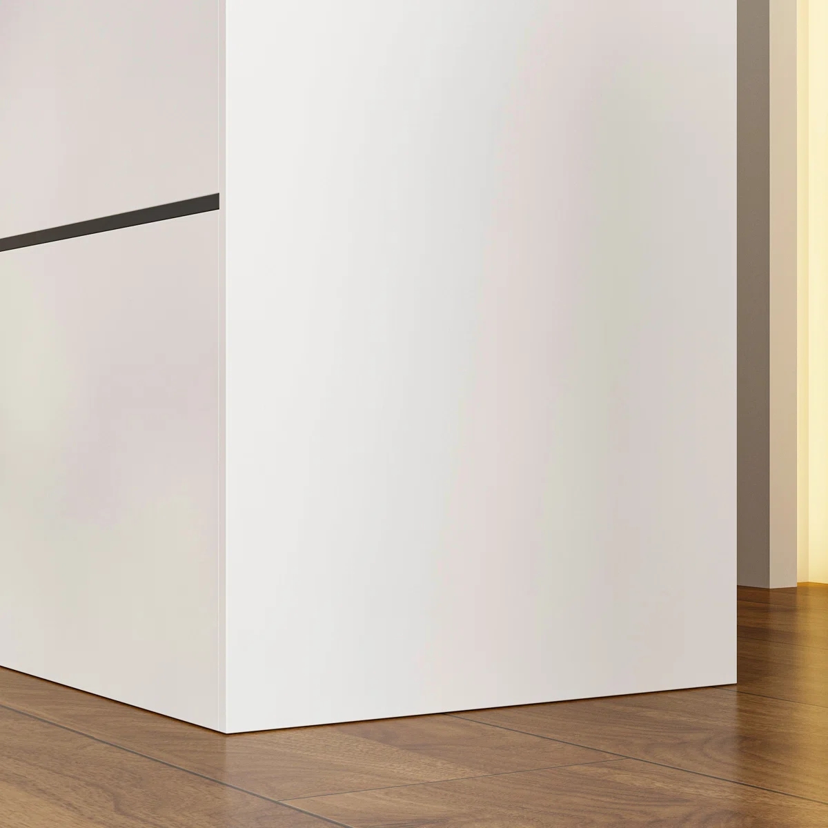 All-White Minimalism: Featuring a crisp, clinical white body and integrated matte black handle pulls, this cabinet utilizes a neutral yet high-contrast design to blend with your office decor while commanding respect for its clean efficiency.