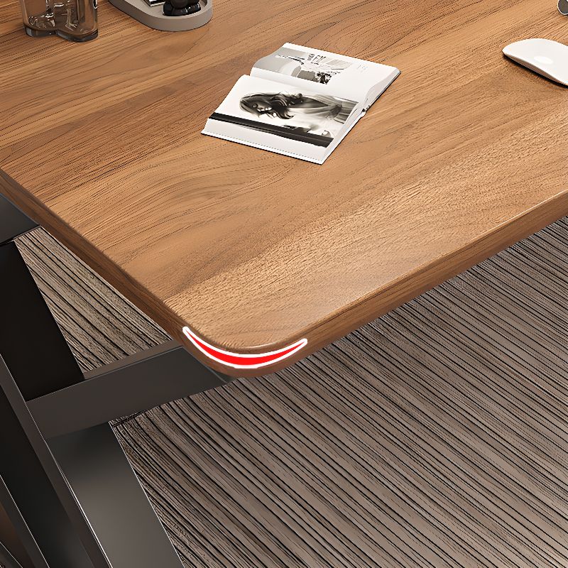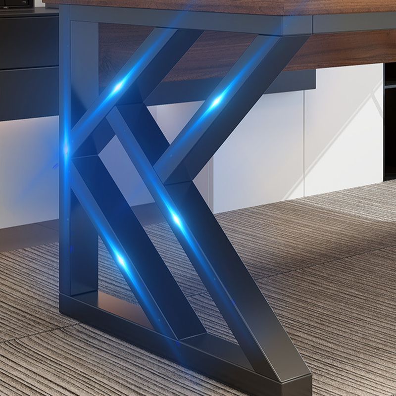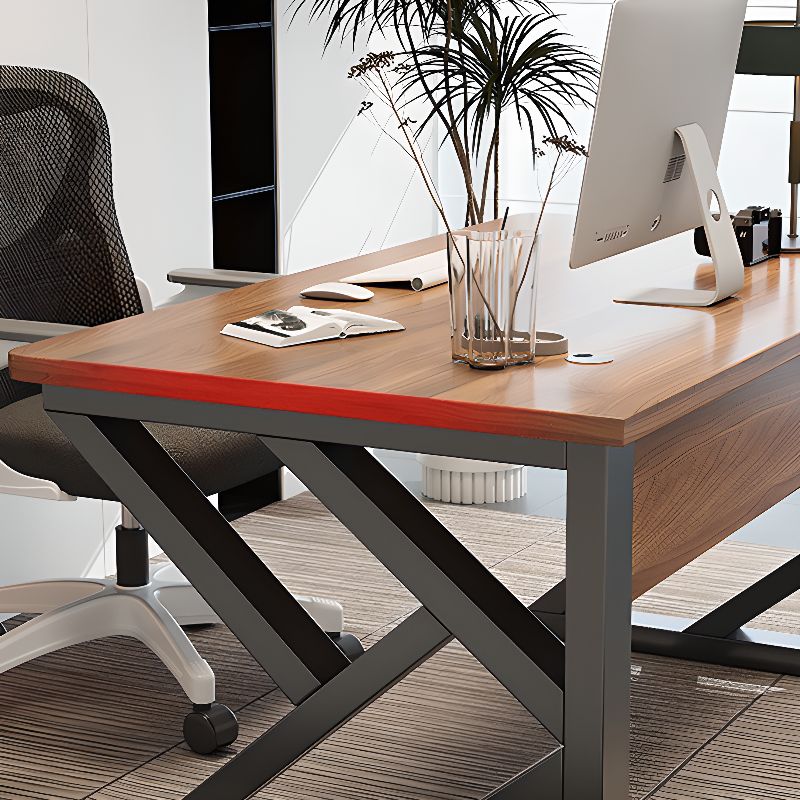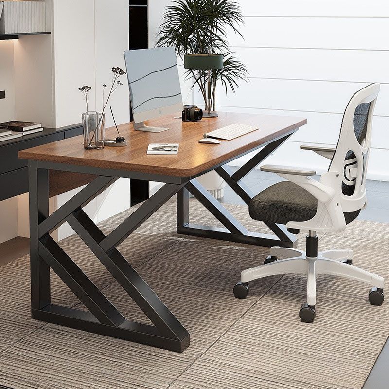 Elevate your workspace with this sleek, contemporary desk designed for professionals who value both aesthetics and performance. Featuring a rich wooden surface and bold black geometric legs, this workstation blends industrial strength with minimalist elegance.