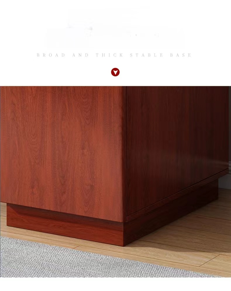 Make a lasting impression with this stately executive desk, crafted for leaders who value sophistication and substance. Its expansive polished wood surface is paired with a dark leather writing pad, offering both elegance and practicality. Multiple drawers on each side provide discreet storage for documents and essentials, while the rich finish and classic design anchor any office with authority. Perfect for law firms, corporate suites, and high-end home offices, this desk transforms your workspace into a center of influence and refinement.