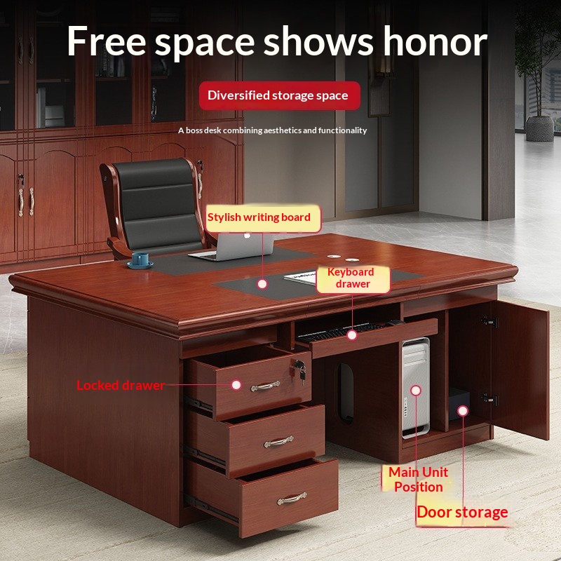 Premium Craftsmanship: Featuring a rich, warm wood grain finish, this desk exudes professional authority and durability.