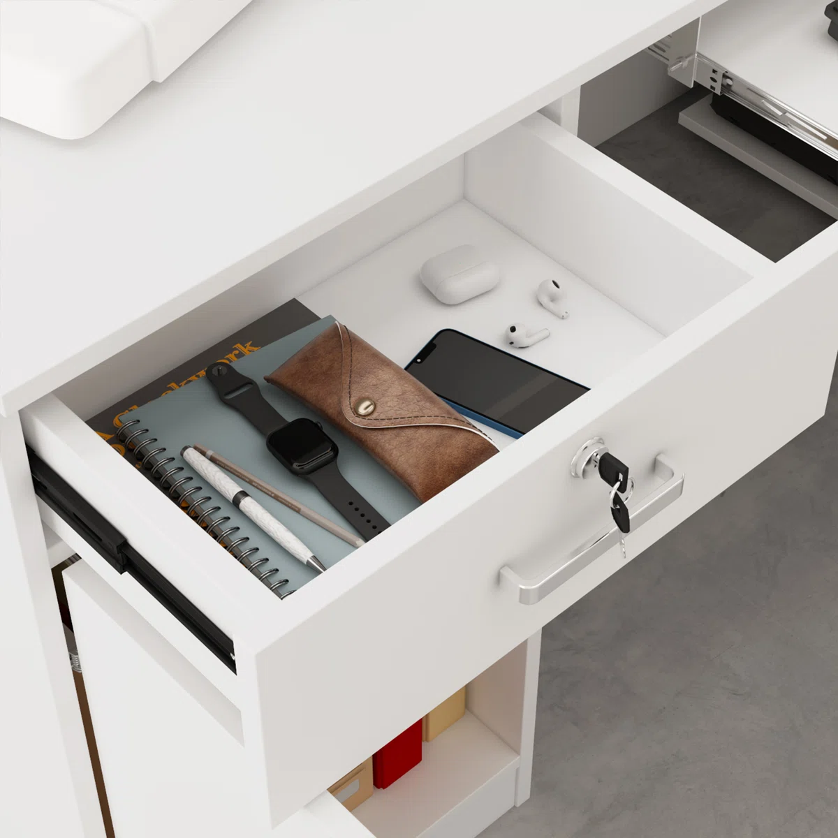 Secure Locking Mechanism: The top drawer is fitted with a dedicated cylinder lock and key, providing a secure spot for sensitive documents, tablets, or personal valuables.