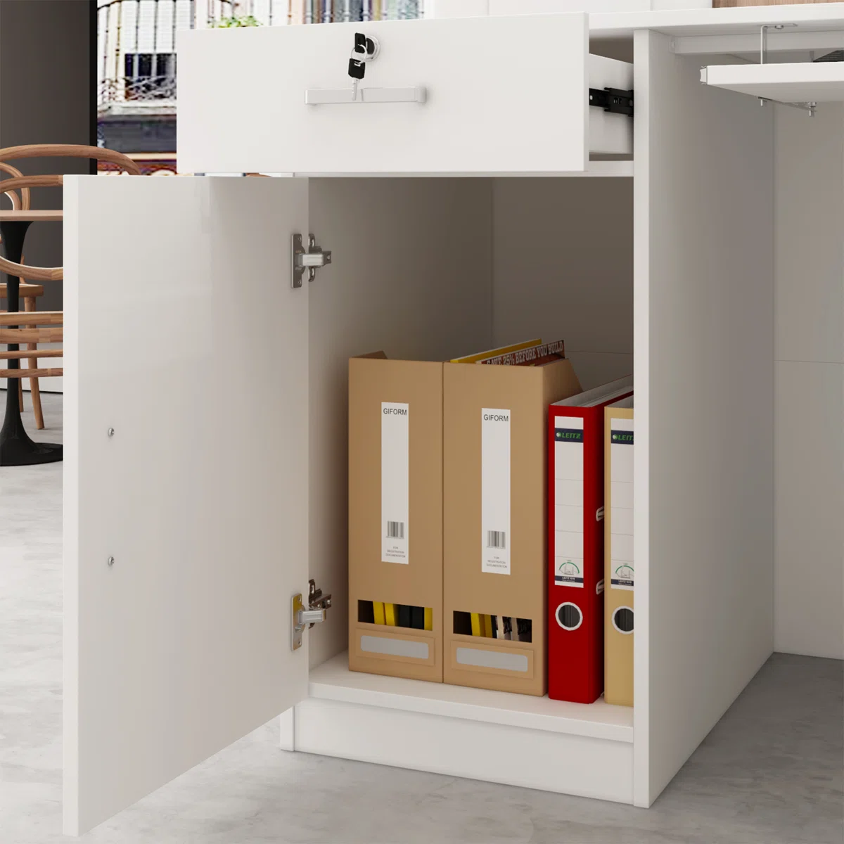 Durable Synthetic Laminate: Constructed with high-grade, scratch-resistant synthetic laminate, ensuring the desk maintains its pristine, “day-one” look even in high-traffic environments.