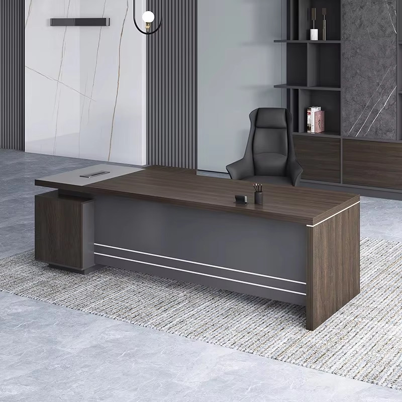 Premium Finishes: The contrast between the rich wood grain and the matte metallic accents offers a sophisticated, multi-textured look that fits perfectly in contemporary high-rise offices or refined home studies.