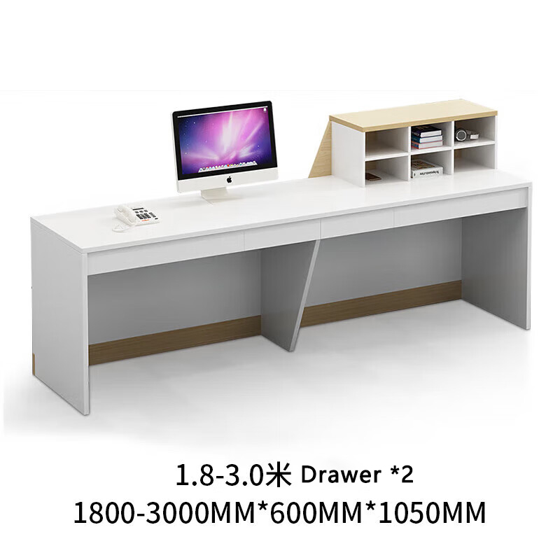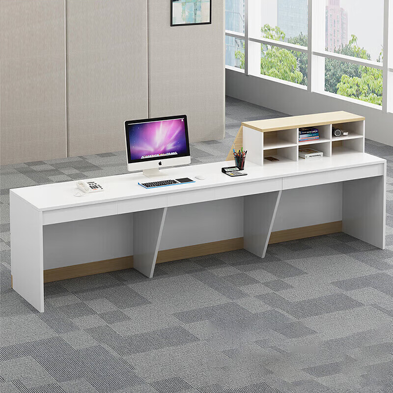 Spacious Dual-Workstation Layout: The expansive surface comfortably accommodates two team members, providing ample room for monitors, administrative tasks, and guest interactions.