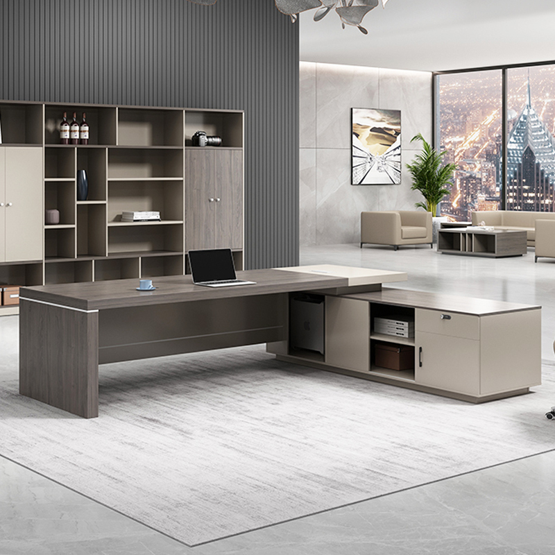 Massive L-Shaped Surface: The primary executive desk flows into a return side cabinet, offering a vast, clutter-free environment for multi-tasking, high-level meetings, and creative deep-work.