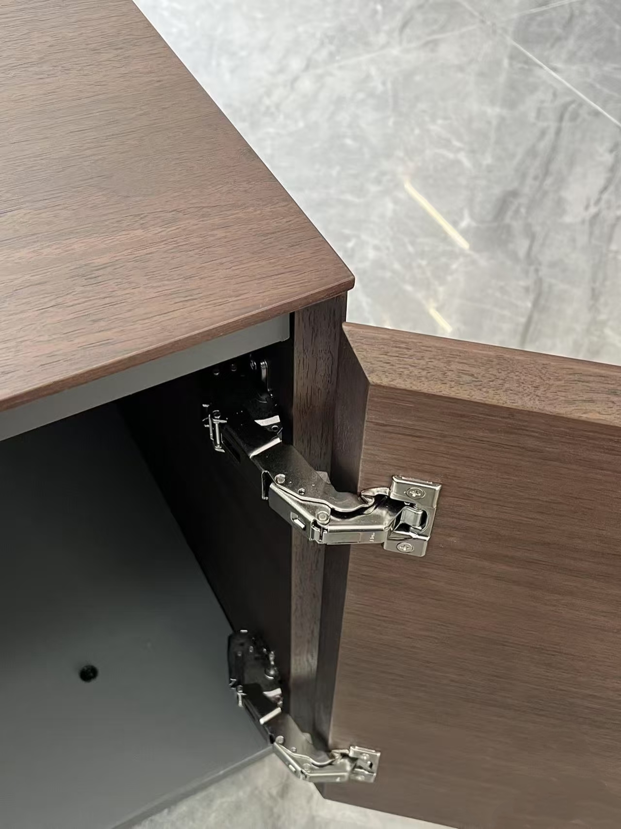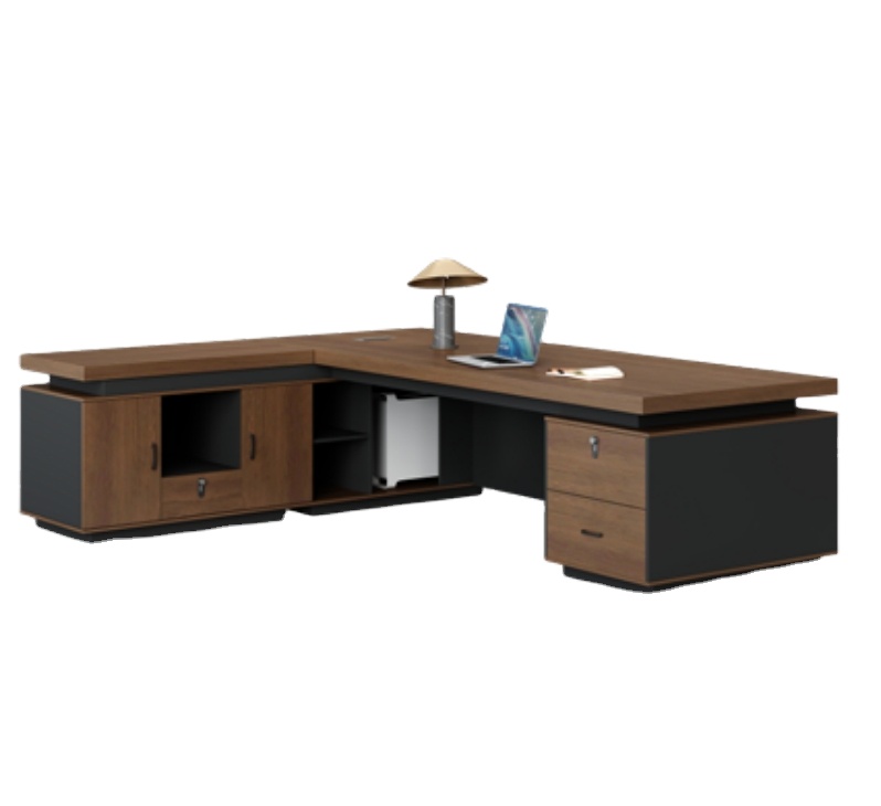 Premium Two-Tone Contrast: Featuring a stunning interplay between rich, natural oak wood grains and sleek, matte slate gray finishes. The result is a timeless aesthetic that anchors any executive suite.