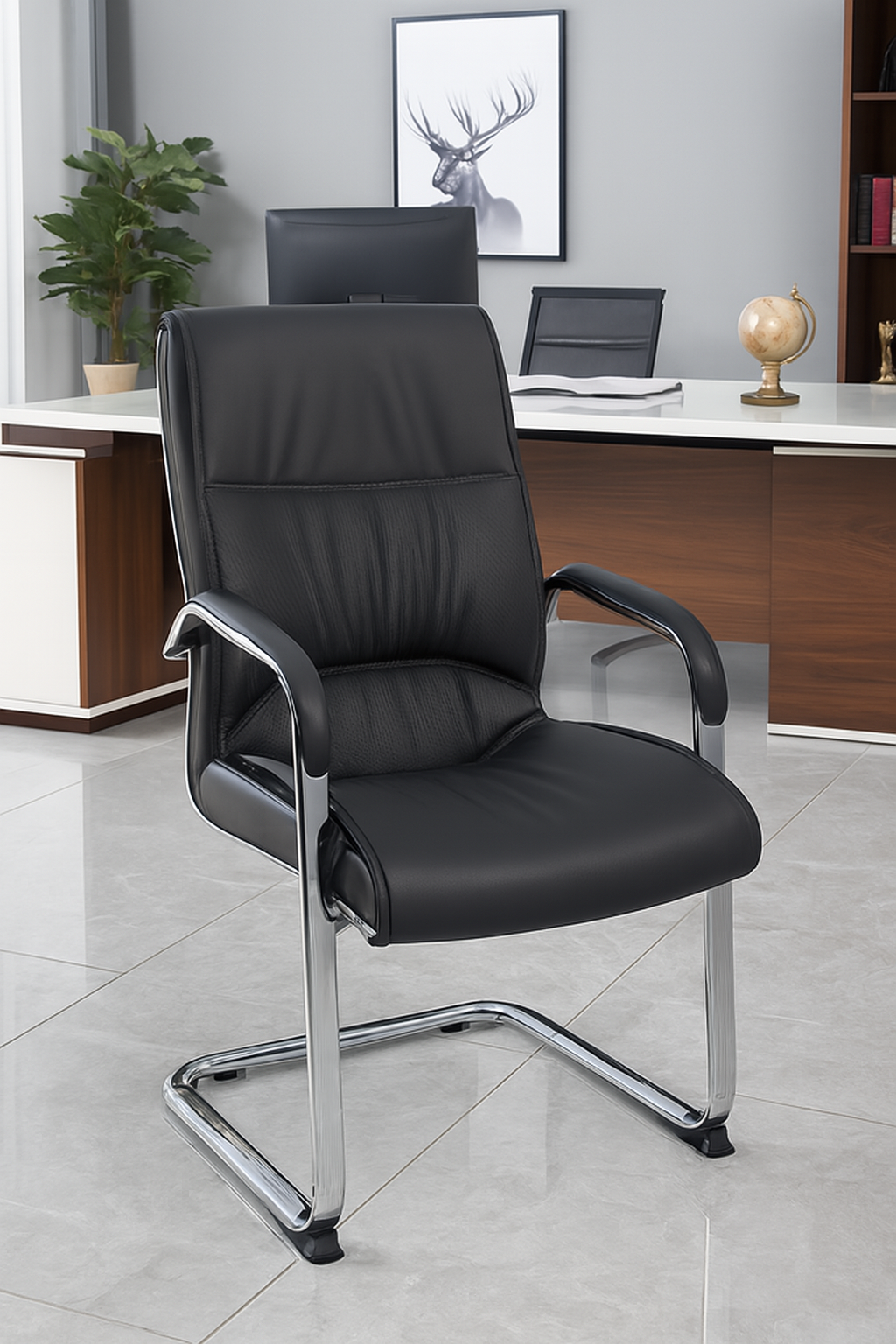 Make a statement in any meeting room or executive office with our Premium Leatherette Guest Chair. Combining sleek, modern aesthetics with exceptional comfort, this chair is designed to impress your clients and keep your team comfortable during extended discussions. Upholstered in luxurious, easy-to-maintain leatherette and supported by a gleaming chrome cantilever frame, it offers both durability and sophisticated style.