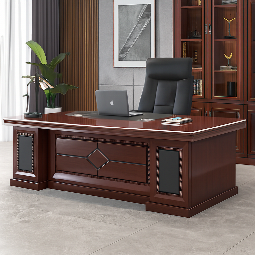 Make a statement in your workspace with the Executive Prestige Wooden Desk, a centerpiece of authority and elegance. Finished in rich dark brown polish and accented with classic paneling and a diamond-front motif, this desk blends traditional craftsmanship with modern utility. Perfect for CEOs, directors, and institutional leaders seeking a desk that reflects confidence and clarity. Whether placed in a private office or boardroom, this piece commands respect without compromising functionality.