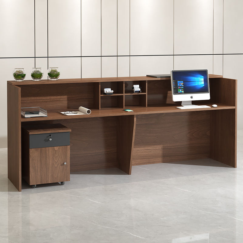 Transform your lobby into a space of executive distinction with the Imperial Walnut Grand Reception Center, an architectural masterpiece designed to command authority and welcome guests with warmth. This expansive desk combines rich, traditional wood textures with sleek modern accents, making it the ideal focal point for high-end corporate offices, law firms, and luxury hotels.