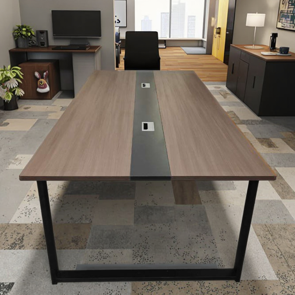 Host dynamic and collaborative meetings with the Apex Horizon Industrial Conference Table, a sprawling, modern centerpiece designed to foster communication in the contemporary boardroom. Blending warm natural textures with high-strength industrial architecture, this table provides an expansive platform for large-scale team projects and executive discussions.
