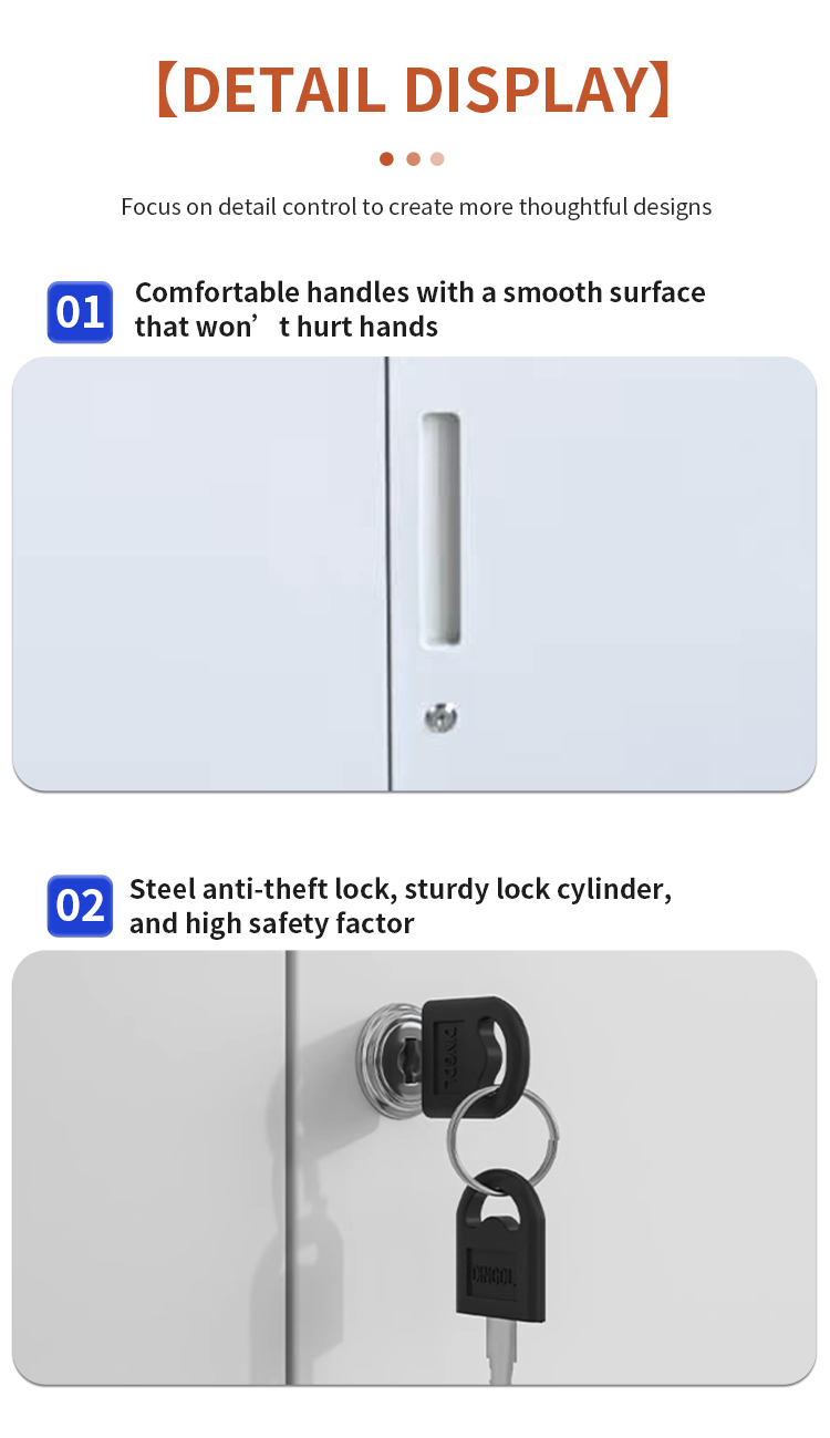 Secure Storage: Equipped with a central key-lock mechanism, you can display your items with confidence, knowing they remain protected when the office is closed.
