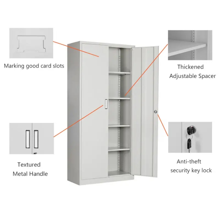 Dual-Door Accessibility: Wide-opening swing doors allow for easy access to oversized items, ensuring you never have to struggle to reach your supplies.