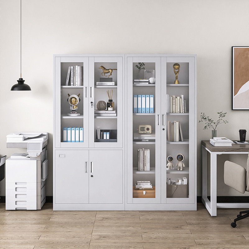 Dual-Layer Security: Both the upper glass doors and the lower solid steel doors are equipped with independent locking mechanisms to ensure your confidential documents remain private.