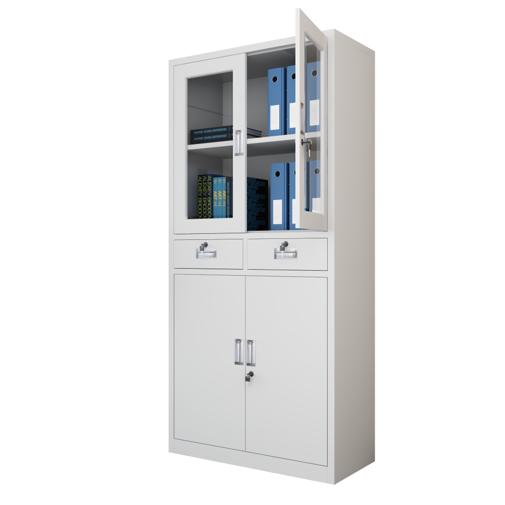 Display & Access: The upper section features two tempered glass doors, allowing you to easily identify binders or display books while keeping them dust-free.