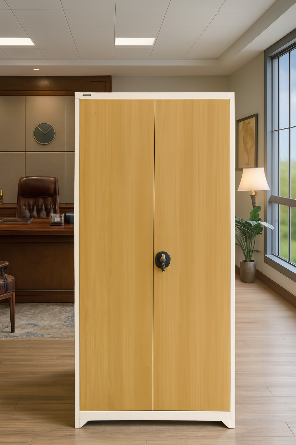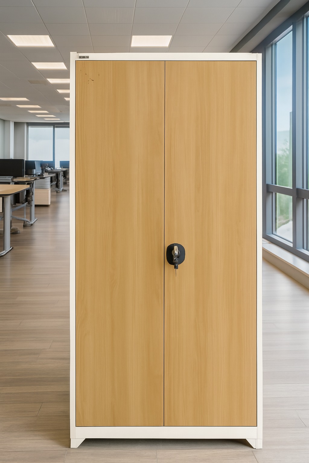 - Dual Vertical Doors – Clean-lined design with a light wood finish that complements modern office aesthetics