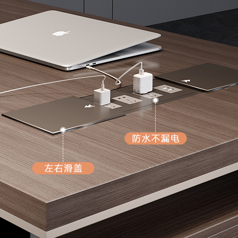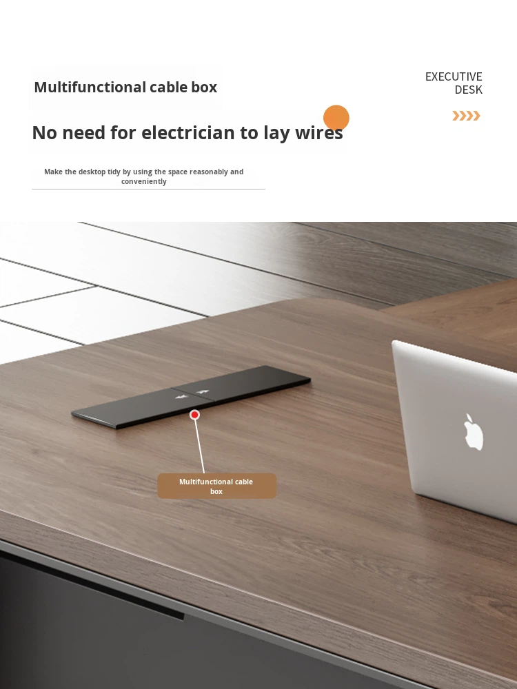 Integrated Tech Management: A discreet, brushed-aluminum cable pass-through is built directly into the desktop, ensuring your power and data lines are organized and out of sight.