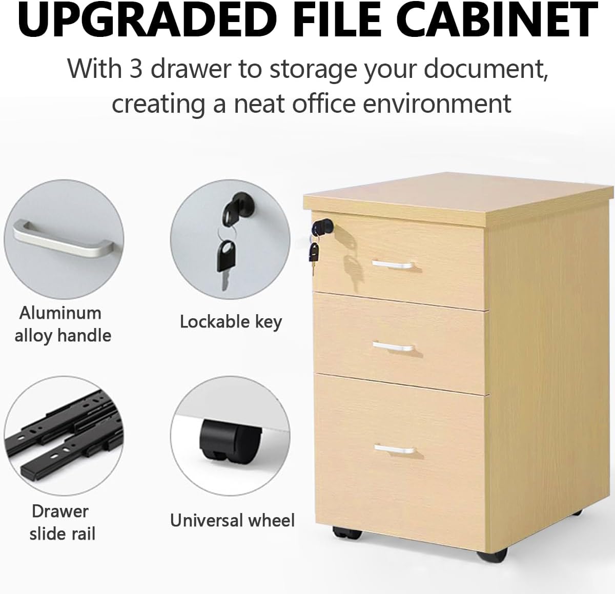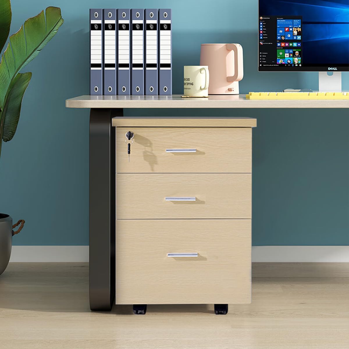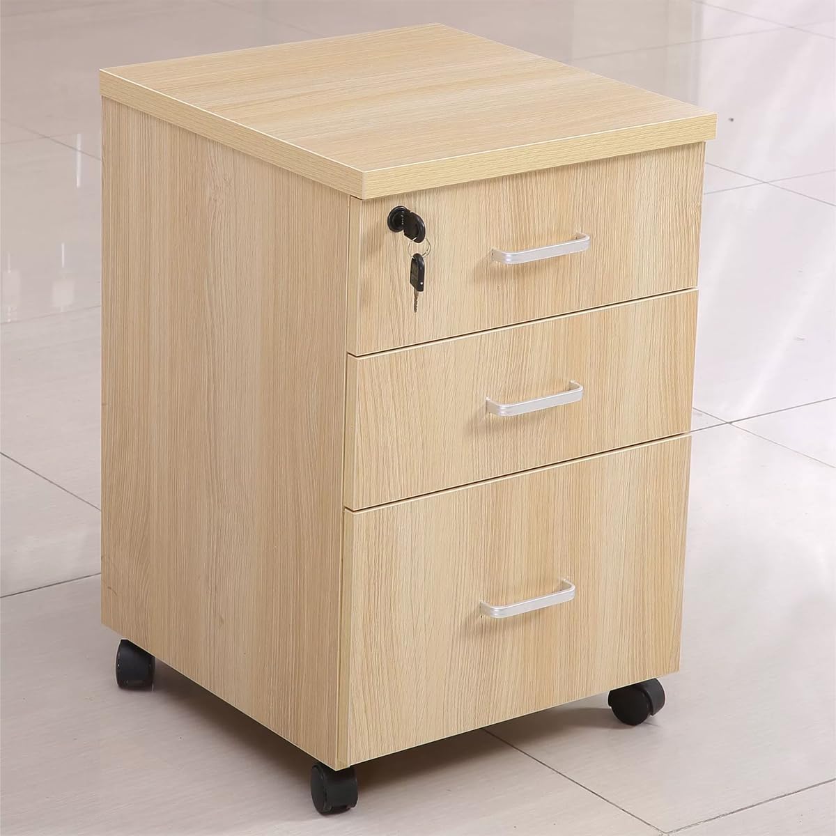 Add a touch of sophistication to your workspace with this premium mobile pedestal drawer unit. Designed for modern offices, it features three spacious drawers with sleek metal handles and a secure lock on the top drawer — perfect for safeguarding sensitive documents and personal items. Set on smooth-rolling caster wheels, this cabinet glides effortlessly wherever you need it, blending flexibility with refined aesthetics. The warm wood finish complements executive desks and contemporary interiors, making it ideal for law firms, corporate suites, and home offices. Perfect for professionals who value both style and practicality in their office setup.