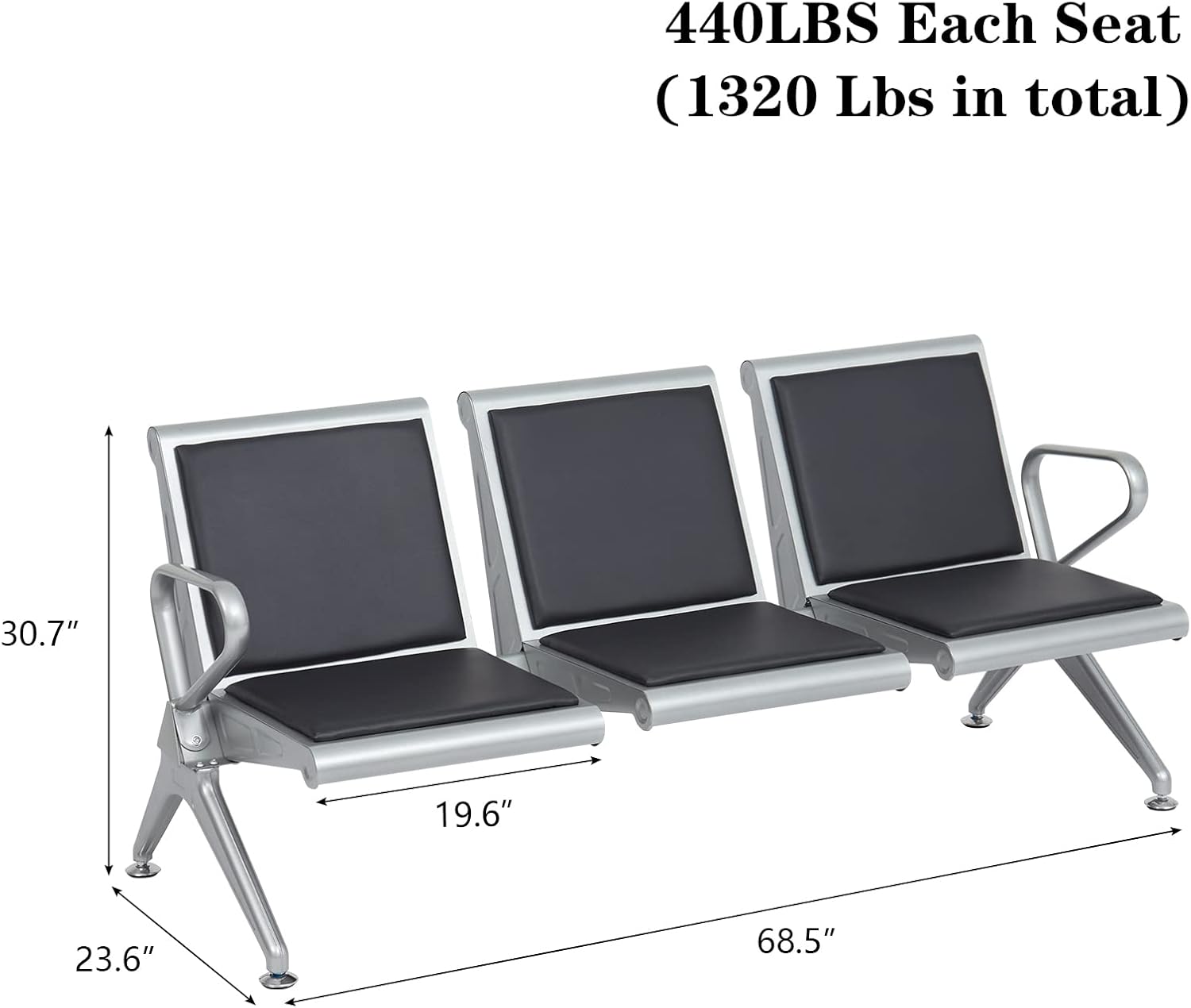 3-Link Heavy Gauge Padded Office Waiting Bench