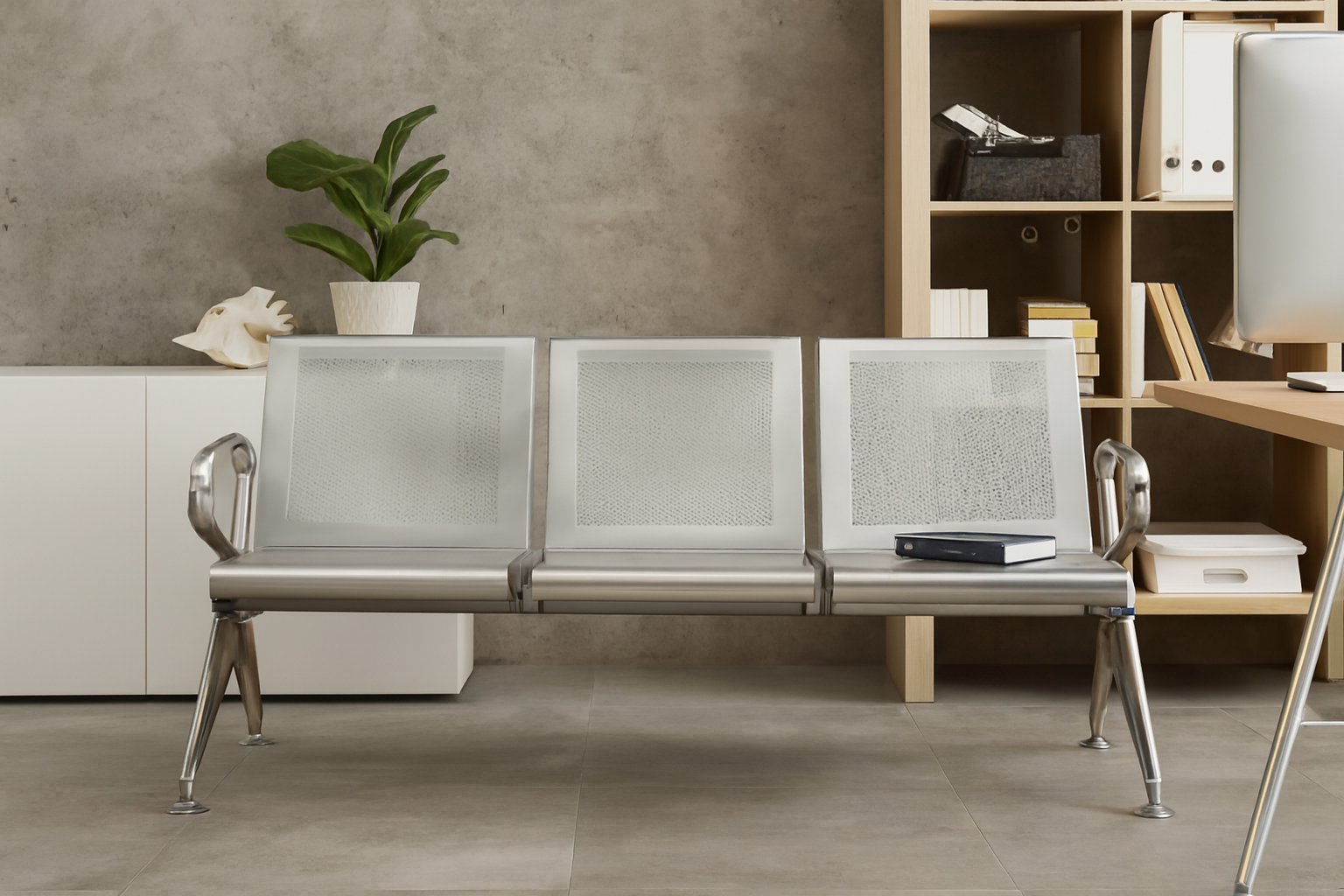 Create a clean, organized, and welcoming environment with this minimalist 3-seater metal bench, built for durability and professional appeal. With perforated backrests and seats, it offers breathable comfort and easy maintenance—ideal for busy reception areas and public spaces. Whether you’re furnishing a waiting room or upgrading your front office, this bench delivers practical comfort with a professional edge.