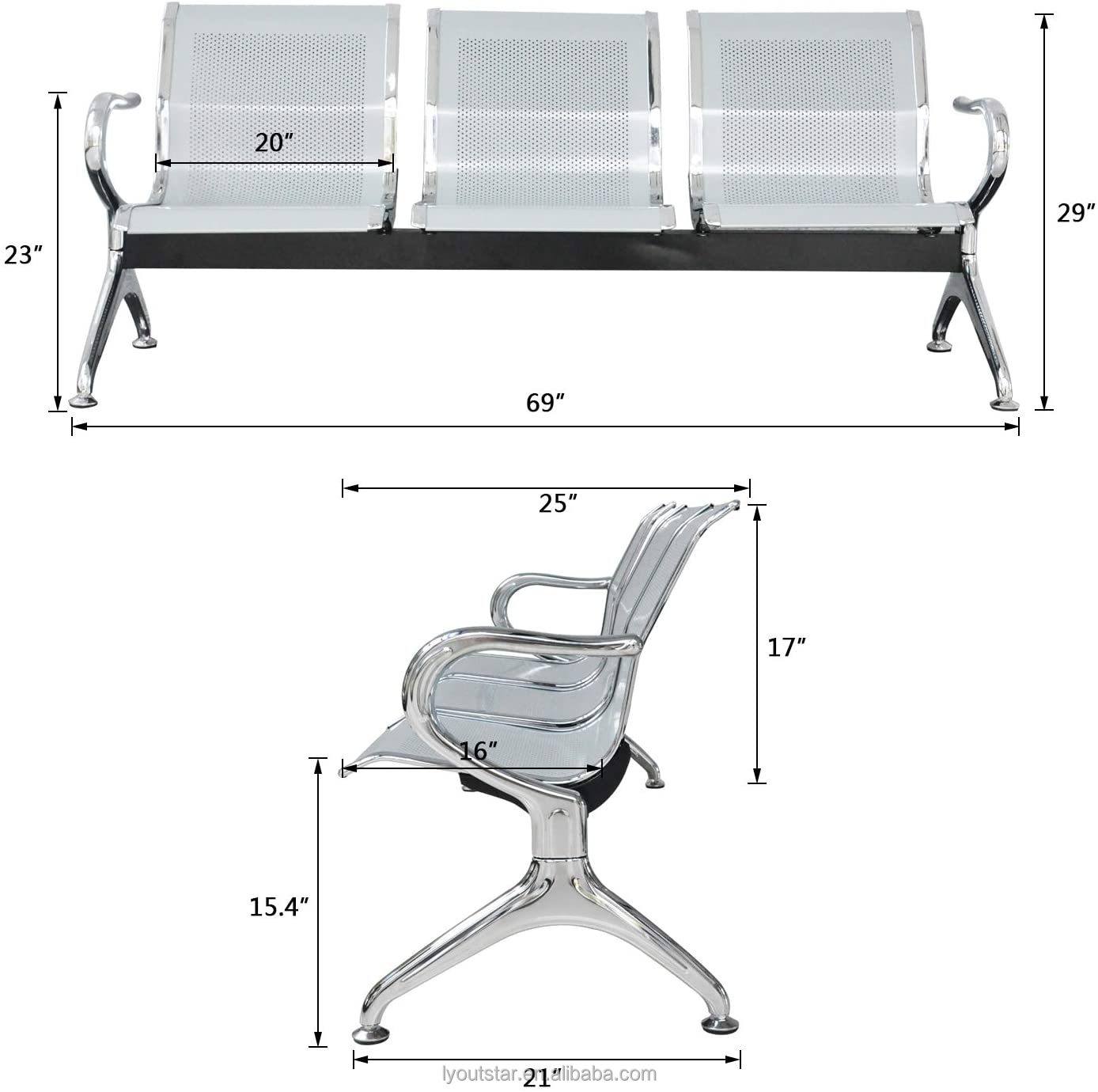 Perforated High-Grade Steel: The seats and backrests are crafted from cold-rolled perforated steel, ensuring maximum breathability and structural integrity. The airflow design prevents heat build-up, keeping guests comfortable during longer wait times.