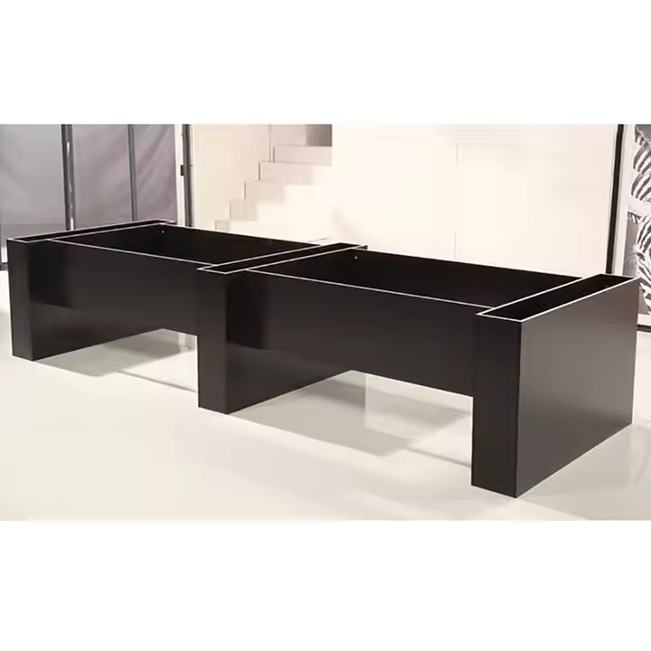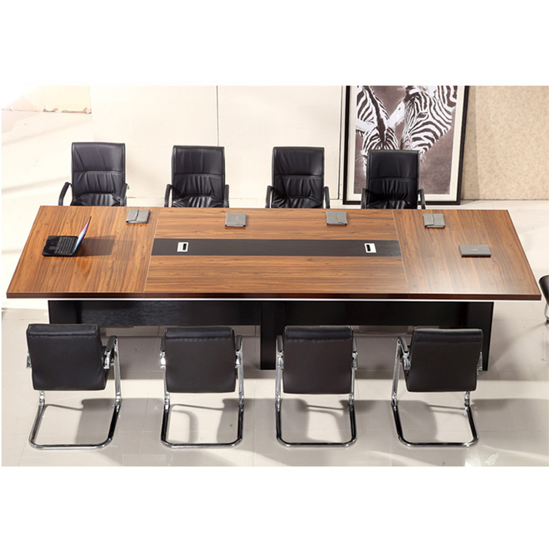Contemporary Dual-Tone Aesthetic: The rich, honey-walnut tabletop is beautifully offset by charcoal-slate structural panels, creating a bold, “tuxedo” visual effect that anchors any boardroom.