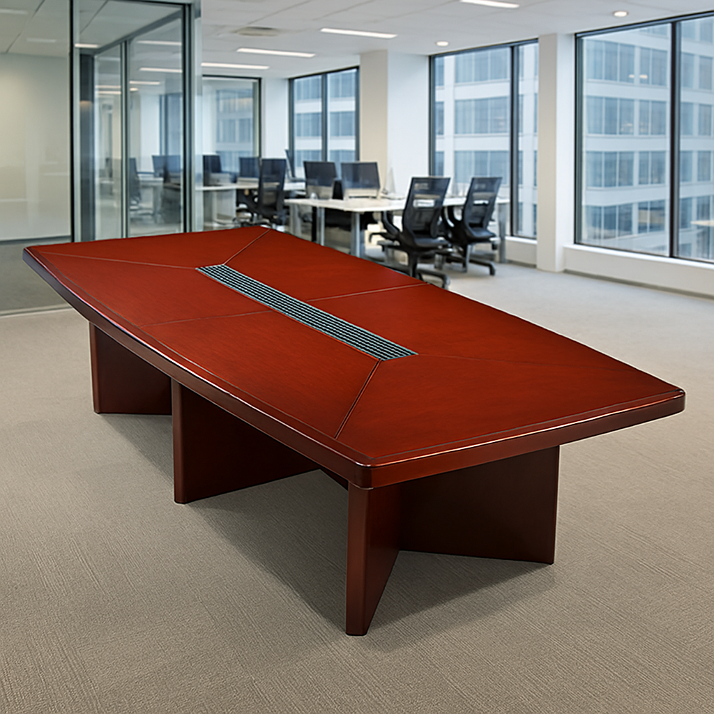Deep Mahogany Luster: Finished in a premium, high-gloss mahogany stain, this table radiates a professional warmth and prestige that complements traditional and transitional office decors.