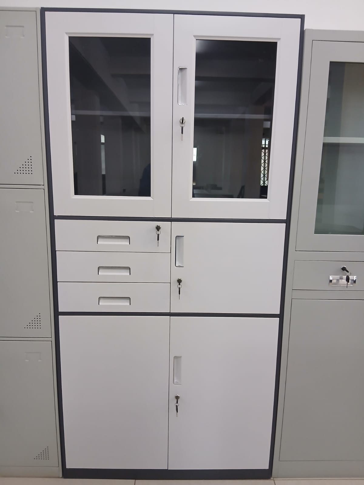 4-Door Half Glass With Safe Metallic Office Cabinet