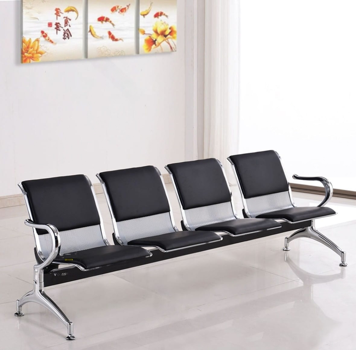 High-Capacity Tandem Seating: A self-contained unit that seats four (4) guests comfortably. The sequential beam design prevents the “crowded furniture” look, maintaining a sleek, organized environment.