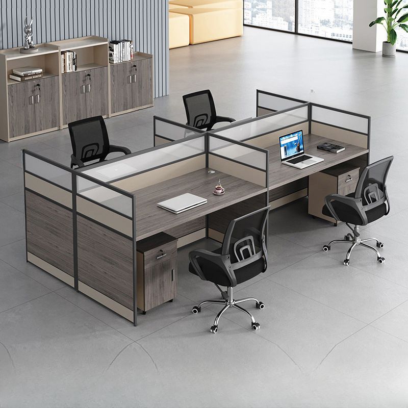 Maximize productivity and style with this sleek 4-person office workstation, crafted for modern teams and collaborative environments. Designed to balance privacy with openness, each desk features elegant frosted glass and wood partitions that define personal space while maintaining a unified aesthetic. Whether you’re outfitting a startup hub or upgrading a professional suite, this workstation delivers the perfect mix of elegance, efficiency, and executive appeal.