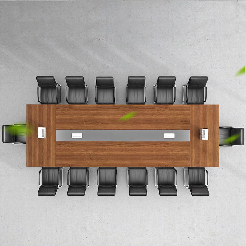 Expansive Natural Oak Finish: Features a sprawling rectangular surface with a rich, linear wood-grain pattern that provides a warm, organic feel to the corporate boardroom.