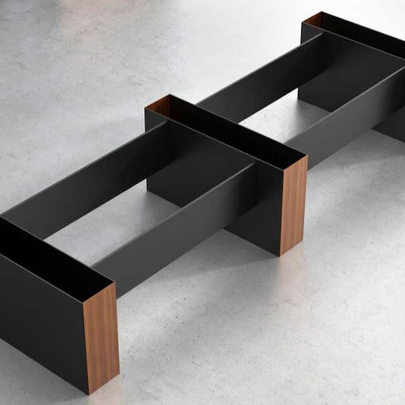 Industrial Dual-Tone Foundation: Supported by massive, slab-style pedestal legs in a sophisticated matte charcoal finish, offering rock-solid stability for large executive teams.
