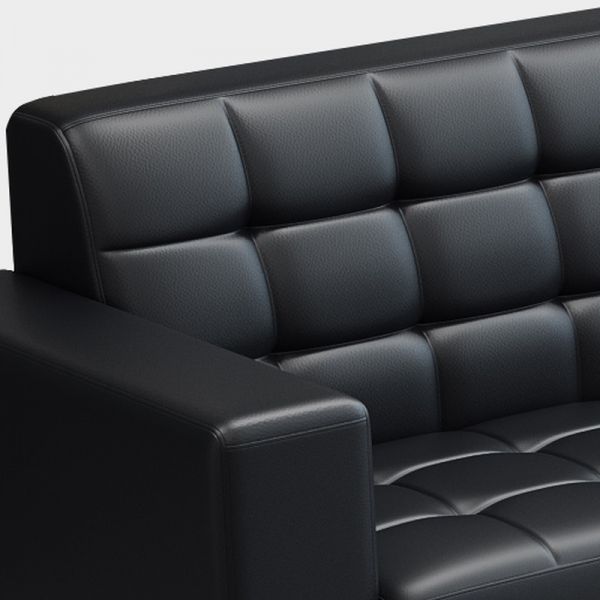 Welcome guests with comfort and class using this sleek black leather lounge set, designed to elevate any professional waiting area. Featuring a spacious sofa and matching armchairs, each piece offers deep cushioning and clean lines that blend seamlessly into modern office environments. The geometric coffee table and curated décor complete the ensemble, creating a space that feels both inviting and executive. Whether you’re outfitting a corporate lobby, law firm, or upscale salon, this set delivers the perfect balance of style and relaxation.