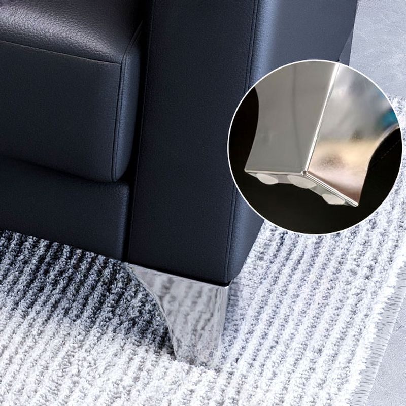 - Light gray textured rug that anchors the arrangement with subtle sophistication