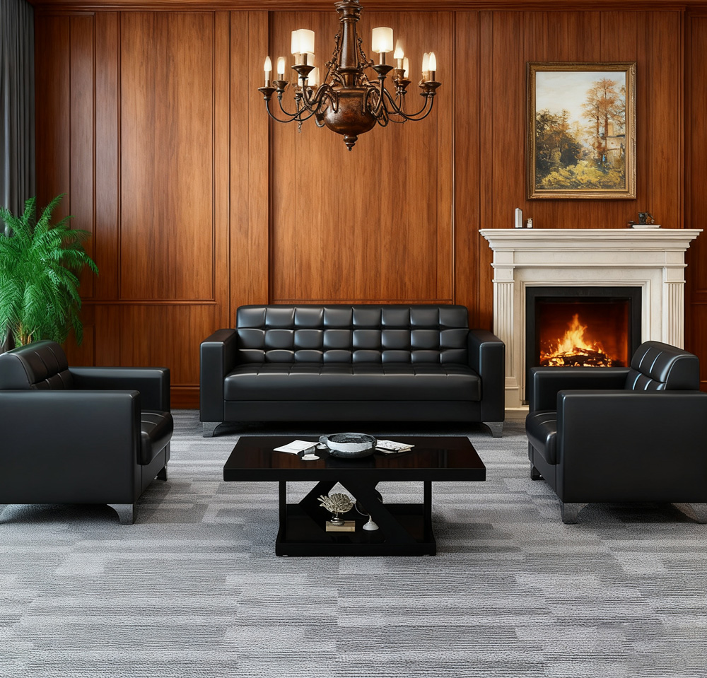 Commanding Presence: The thick, block-style armrests and low-profile backrest create a grounded, modern aesthetic that fits perfectly in executive suites, private lounges, or upscale residential living rooms.