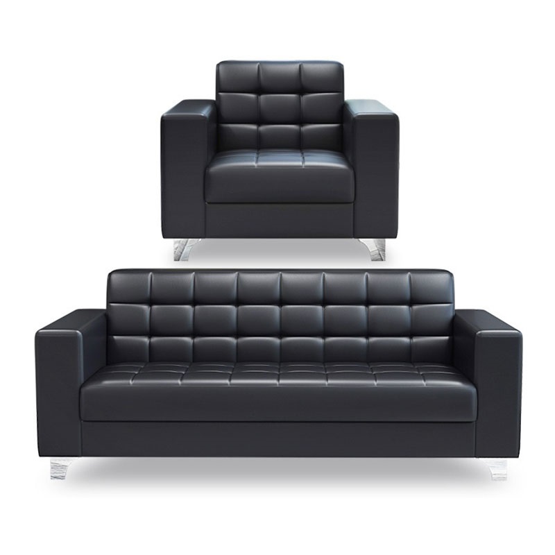 Bold Architectural Profile: With its wide, squared-off armrests and low-profile silhouette, this set creates a clean, masculine aesthetic perfect for modern corporate environments.