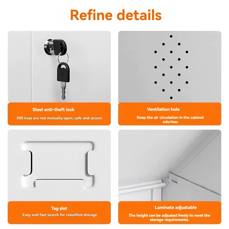 Breathable Design: Integrated ventilation louvers on every door promote airflow, preventing odors and keeping personal items fresh throughout the day.