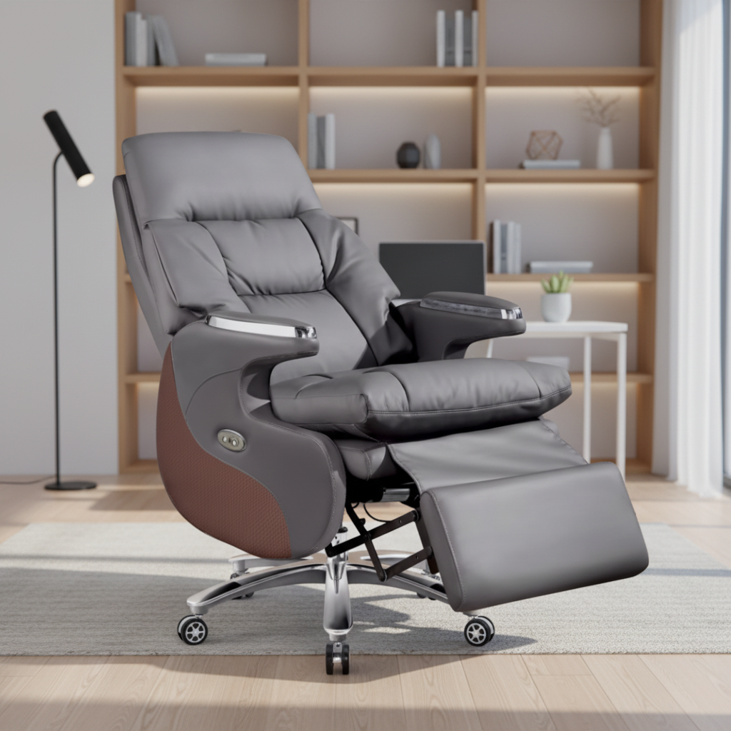 Experience the future of office comfort. This isn’t just an executive chair; it’s a personal wellness station designed for the high-performing professional. Merging avant-garde industrial design with the plush comfort of a luxury lounge, the Sovereign Recliner is built for those who lead with vision and demand the best in ergonomic technology.