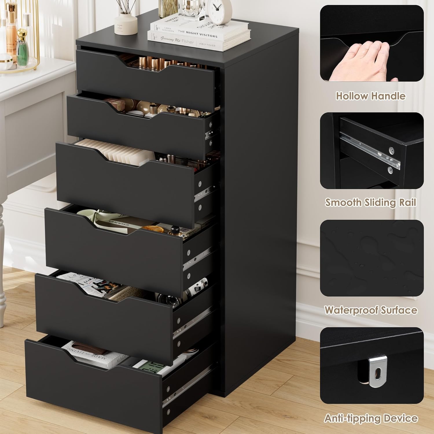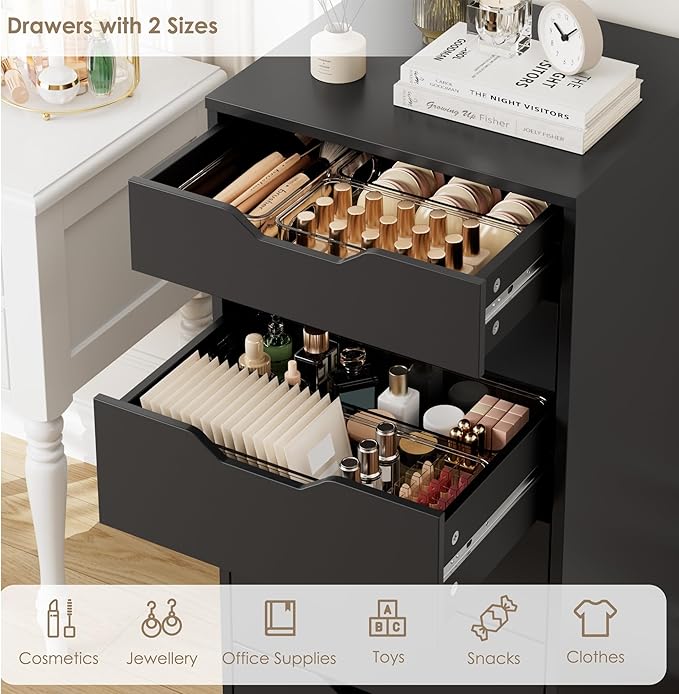 Versatile Storage: Six spacious drawers provide ample room for everything from skincare and cosmetics to office supplies or crafting tools.