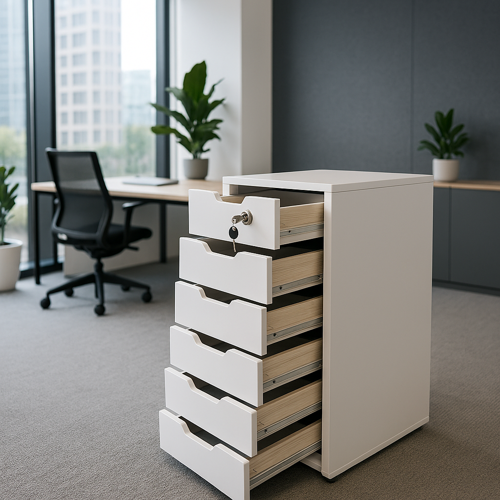 Efficiency meets elegance with our latest office essential. Designed for the modern professional who values both security and streamlined aesthetics, this premium chest of drawers is more than just storage—it’s a productivity partner.