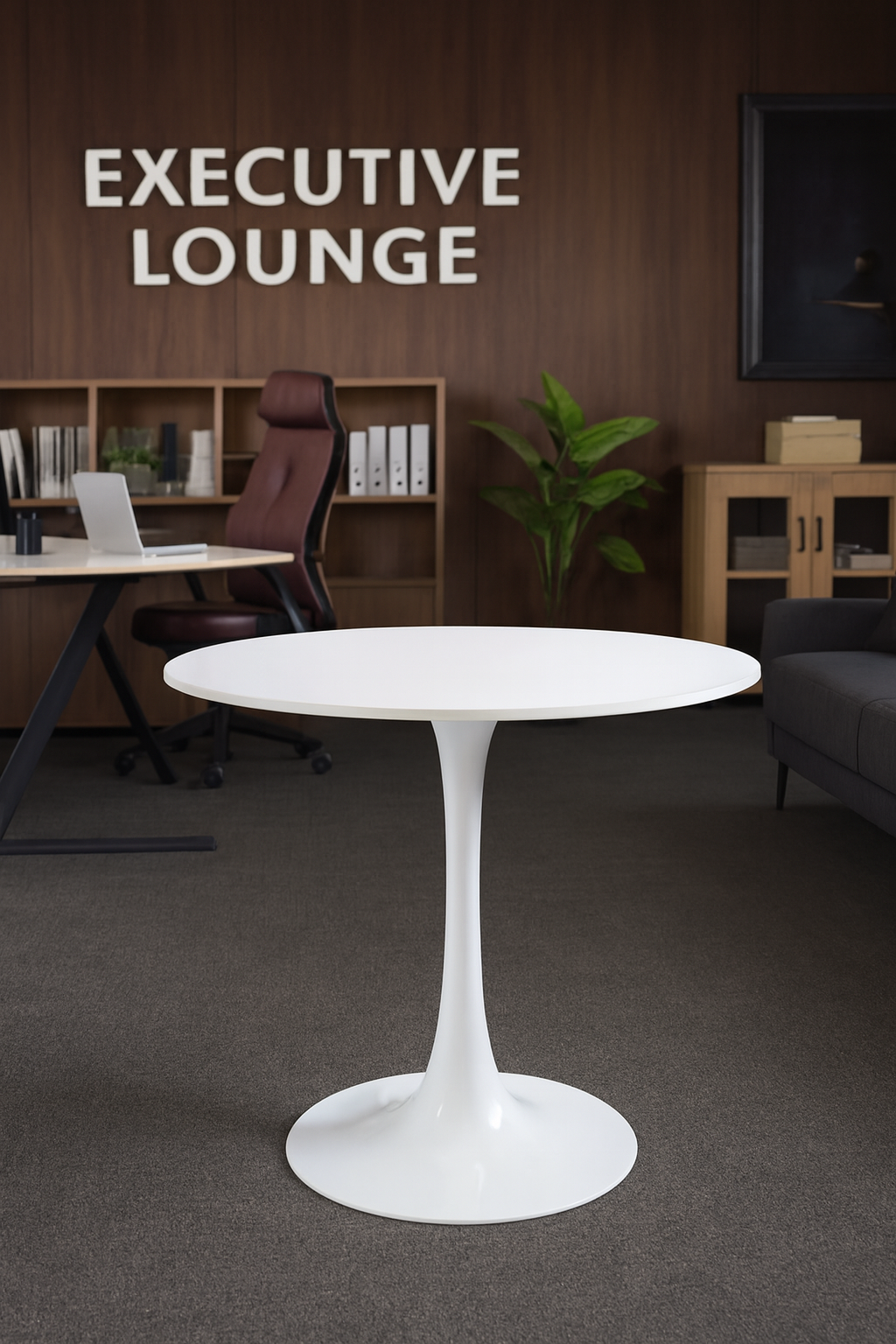 - Clean Aesthetic: Crisp white finish with a tulip-style base that blends seamlessly into stylish office settings.