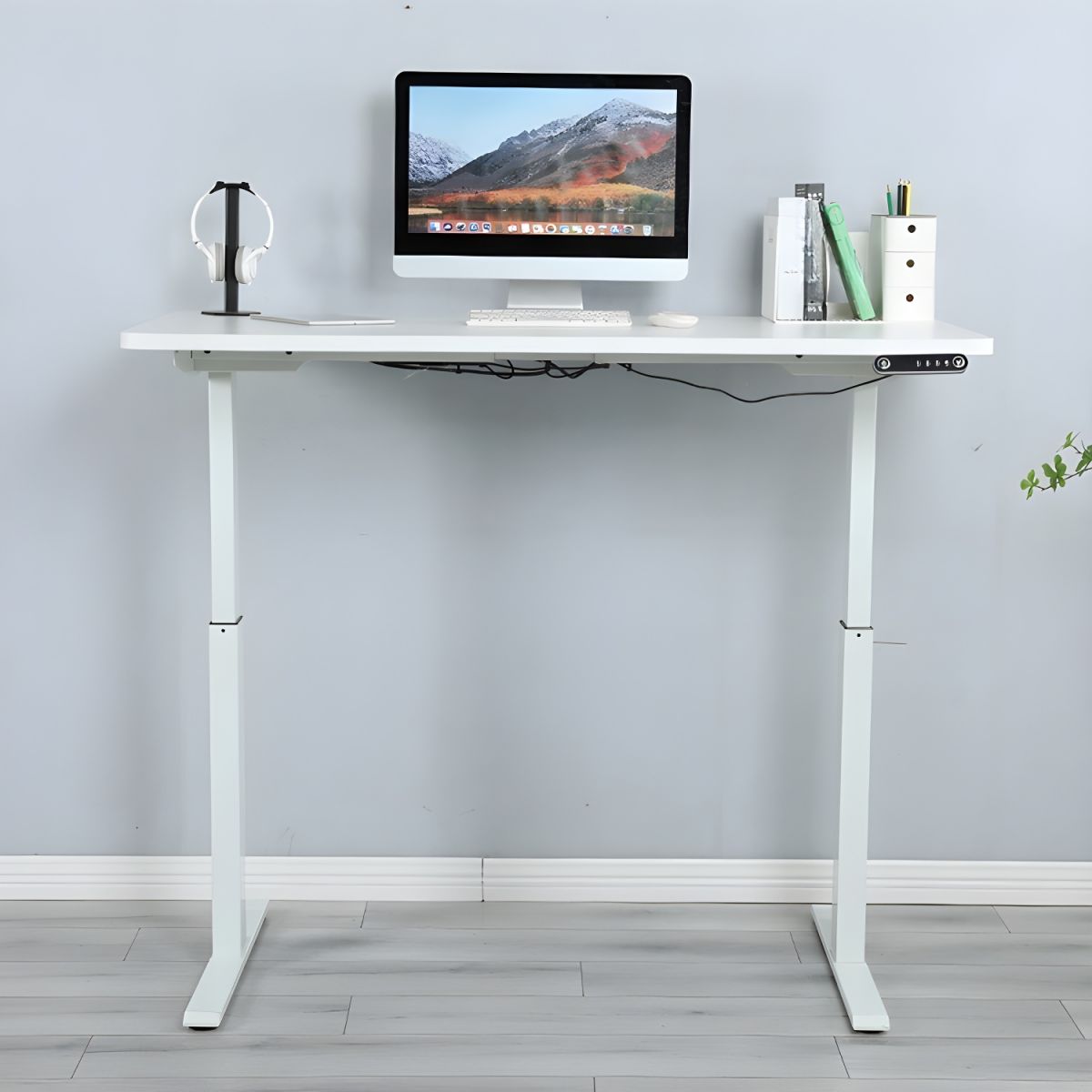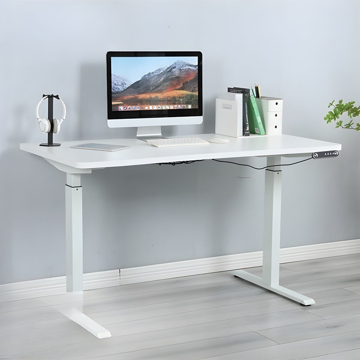 Reimagine your workflow with this elegant standing desk, crafted for comfort, flexibility, and modern aesthetics. With a crisp white finish and smooth electronic lift system, it adapts to your posture and pace—perfect for professionals who value both style and ergonomics. Whether you’re editing, coding, or consulting, this desk supports your goals with comfort and clarity.