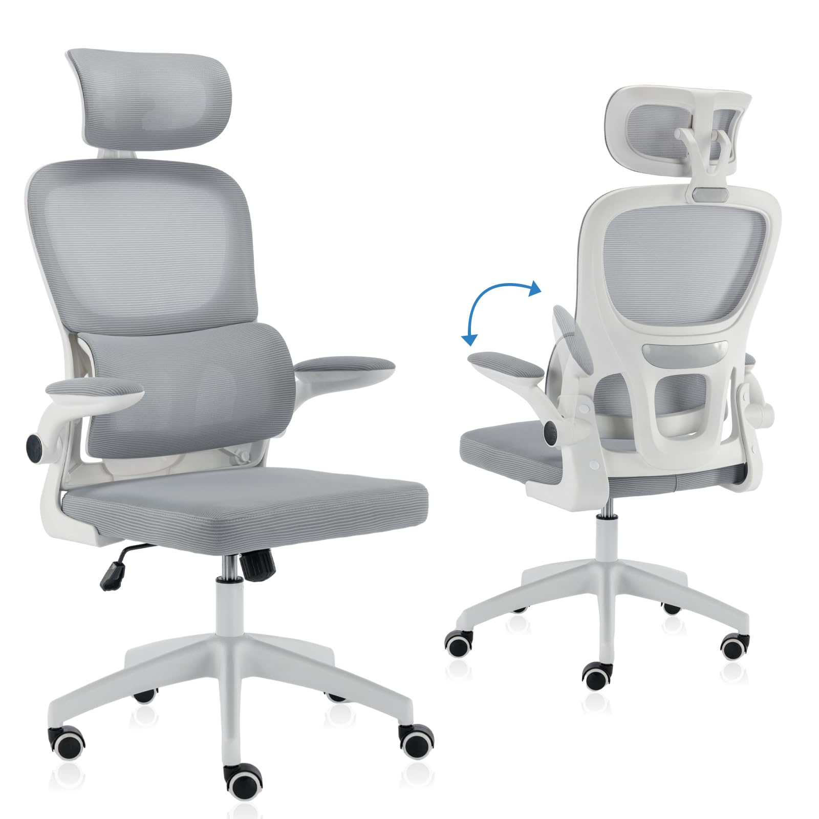 90° Flip-Up Armrests: Perfect for sliding your chair under the desk to save space when not in use.