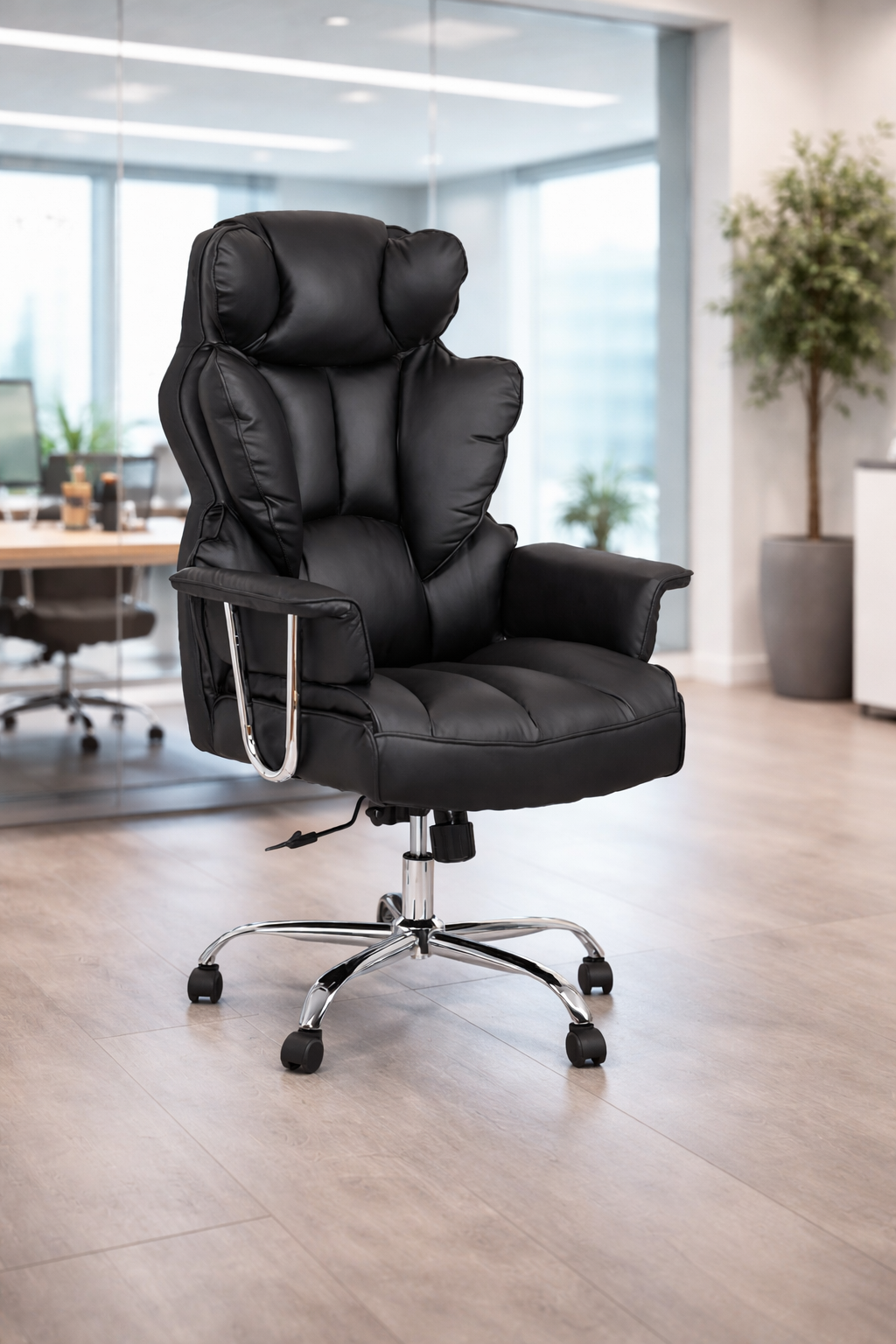 Why settle for a stiff office chair when you can sit in the lap of luxury? The Monarch Executive Chair is meticulously engineered for high-performers who refuse to compromise on comfort. Combining deep, overstuffed cushioning with sleek chrome accents, this chair transforms your desk into a first-class seating experience—keeping you relaxed and focused from your morning coffee to your evening wrap-up.