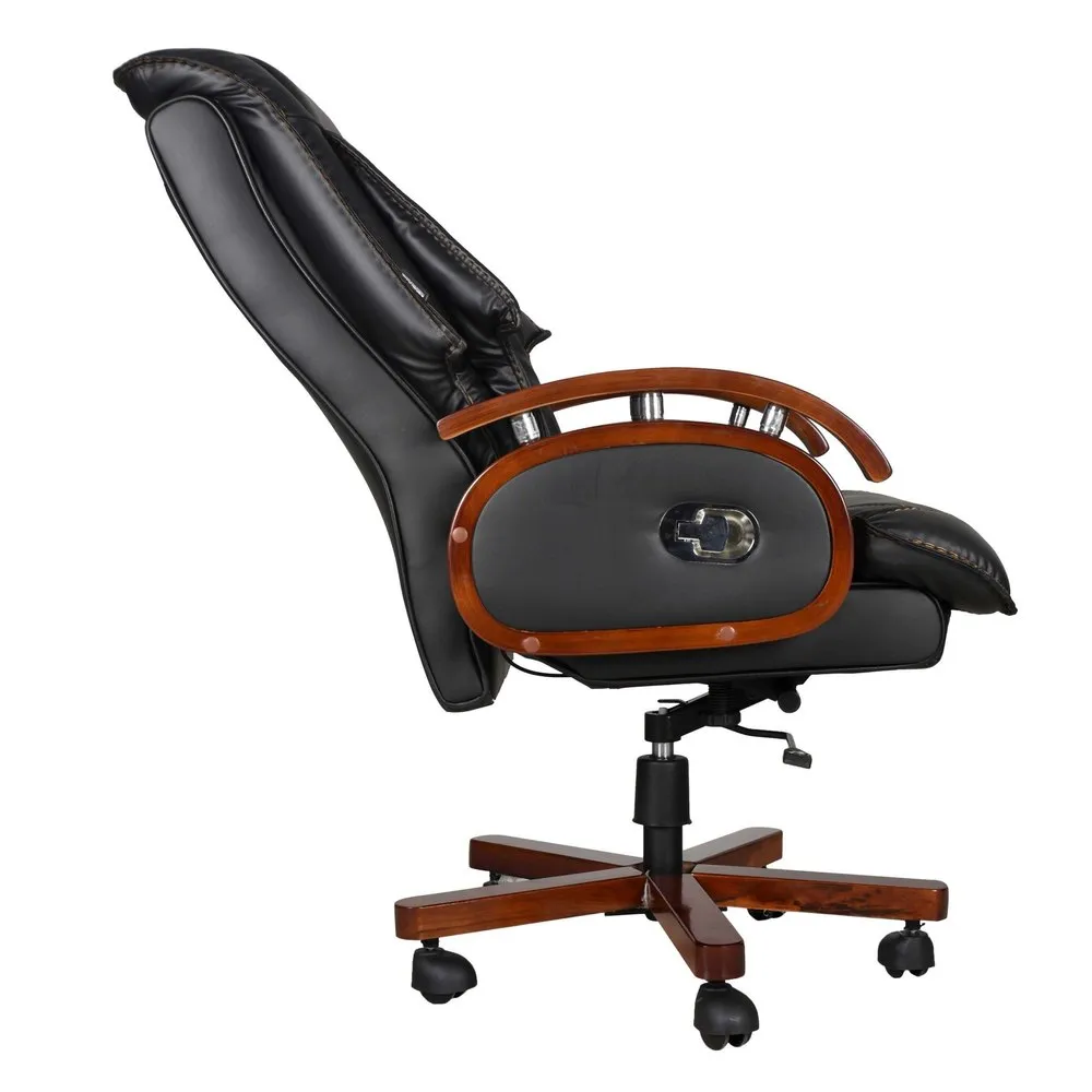 Integrated Padded Armrests: Sculpted wooden arms feature soft leather inlays, offering a stable and luxurious resting place for your forearms during high-level meetings.