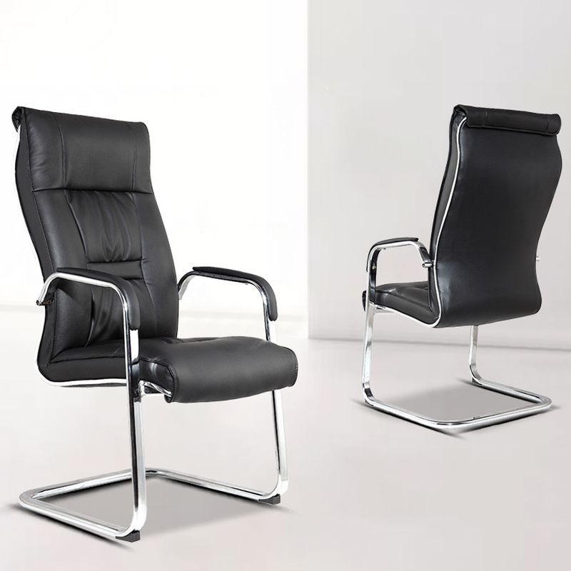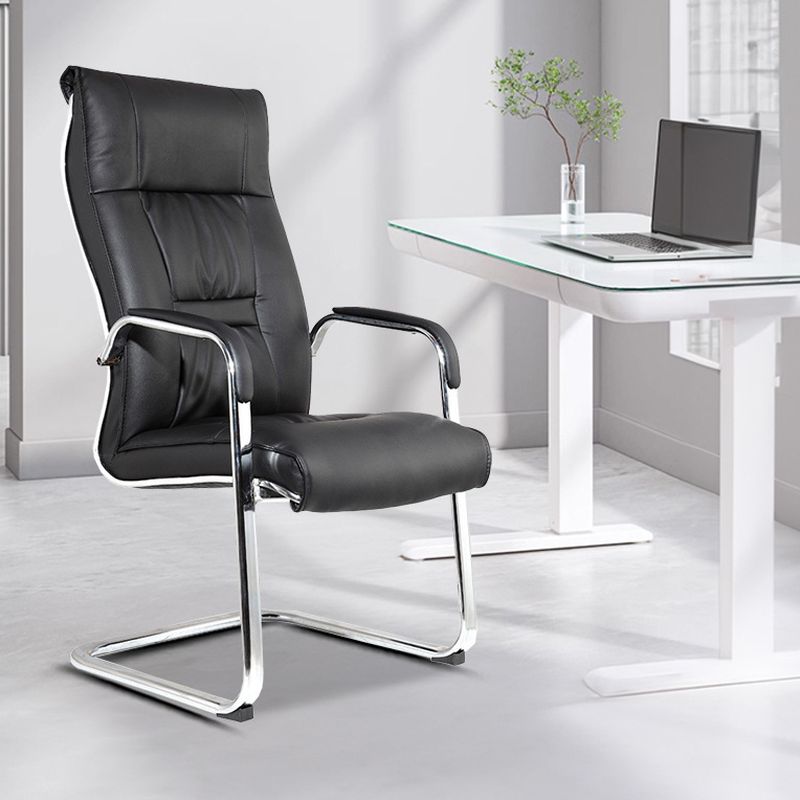 - Chrome cantilever frame offering a subtle bounce and modern silhouette that complements glass desks and minimalist interiors