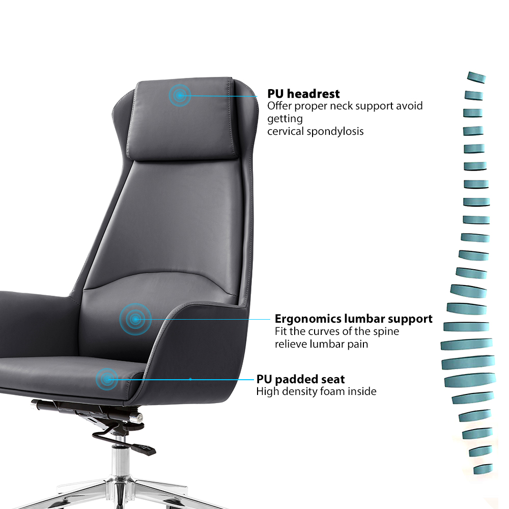 Elevate your workspace with a chair that blends architectural elegance with uncompromised support. Designed for the modern leader, this high-back executive chair is more than just a seat—it is a statement of professional excellence. Crafted with high-quality, charcoal-grey vegan leather, the Pinnacle Chair offers a sleek, matte finish that complements any high-end office or home study. Its contoured silhouette follows the natural curvature of the spine, providing a sophisticated aesthetic without sacrificing ergonomic integrity.