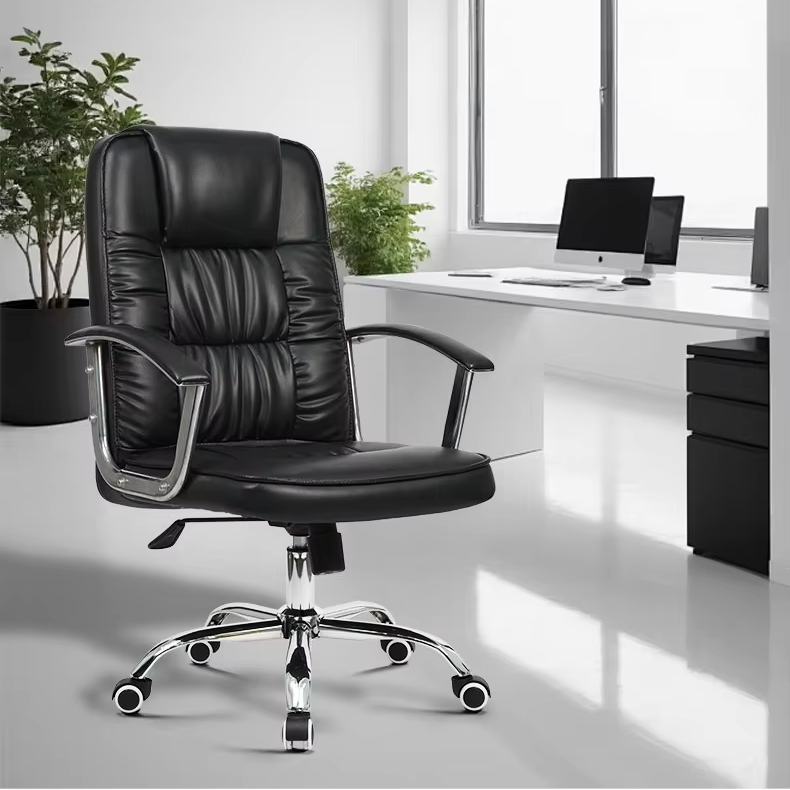 Polished Mirror-Finish Chrome: Supported by a heavy-duty chrome base and armrest accents, this chair offers an upscale, professional aesthetic that elevates any executive office.