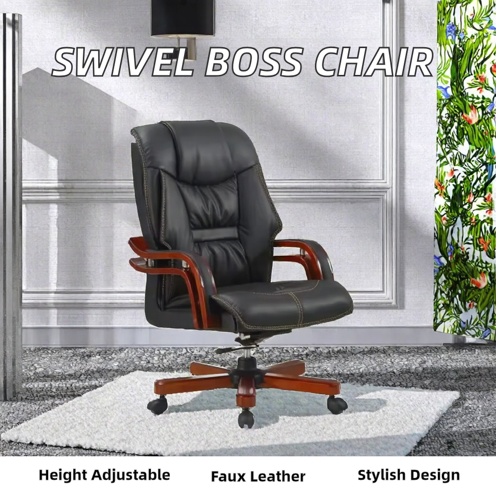 Command your day from a seat of true distinction. The Imperial Chancellor Executive Throne is a masterwork of traditional craftsmanship designed for those who value heritage, presence, and unparalleled comfort. Combining the rich warmth of solid wood with deep, supple leather, this chair is built for the leader who has arrived. Every detail—from the intricate gold-thread contrast stitching to the polished mahogany-finished frame—is designed to make a powerful statement in any executive office or home library.